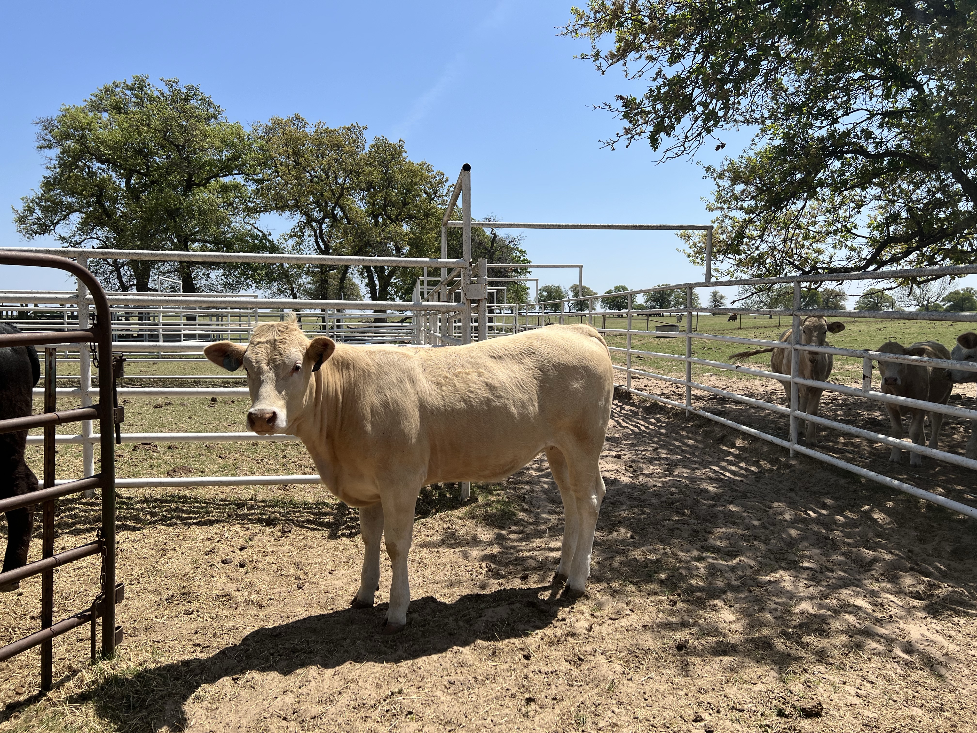 The British White x Blonde is our favorite cross and does phenomenally on our ranch. This sweet girl will be a wonderful calver, is sweet and calm to work, and is a joy in any herd.